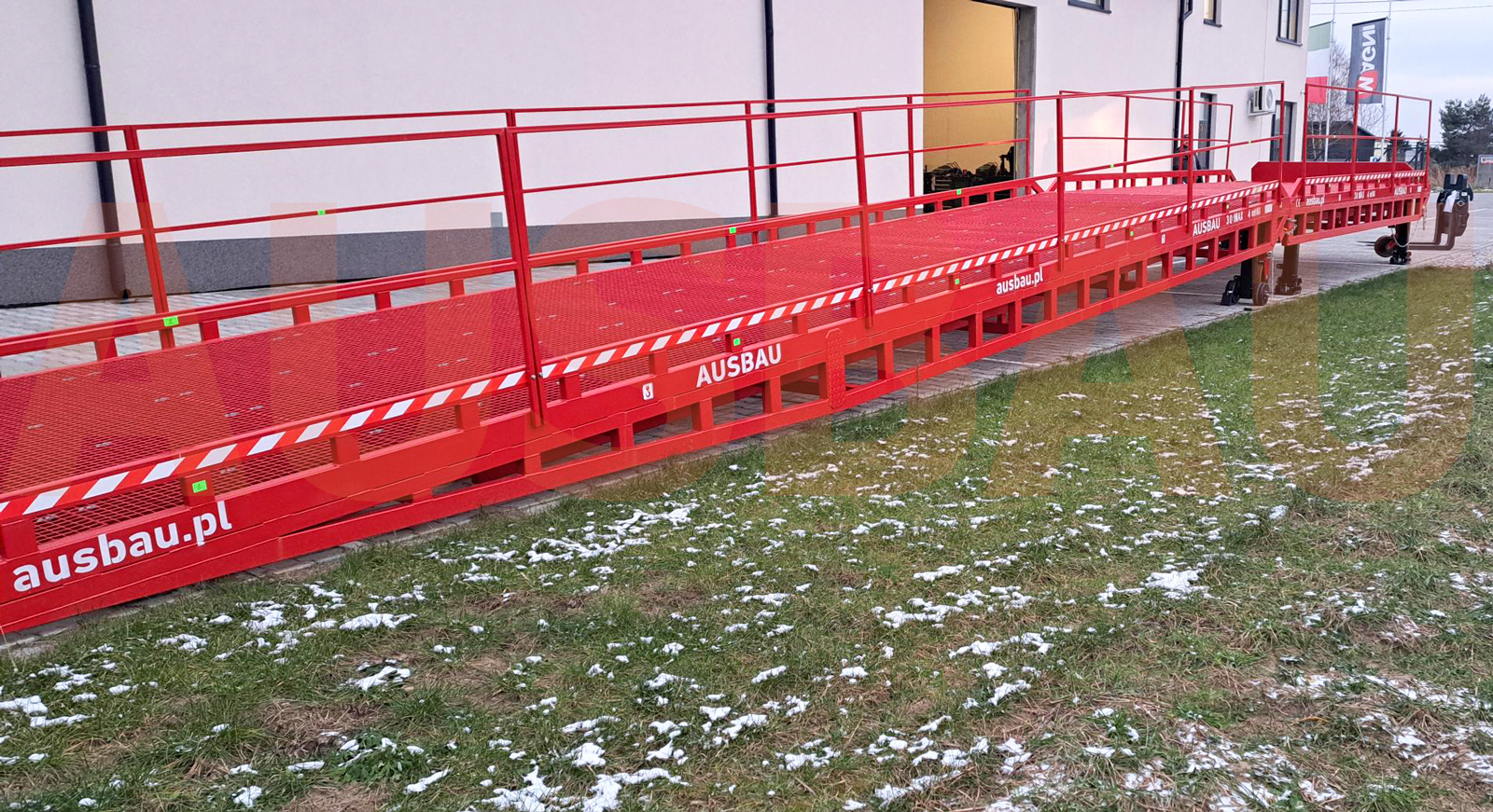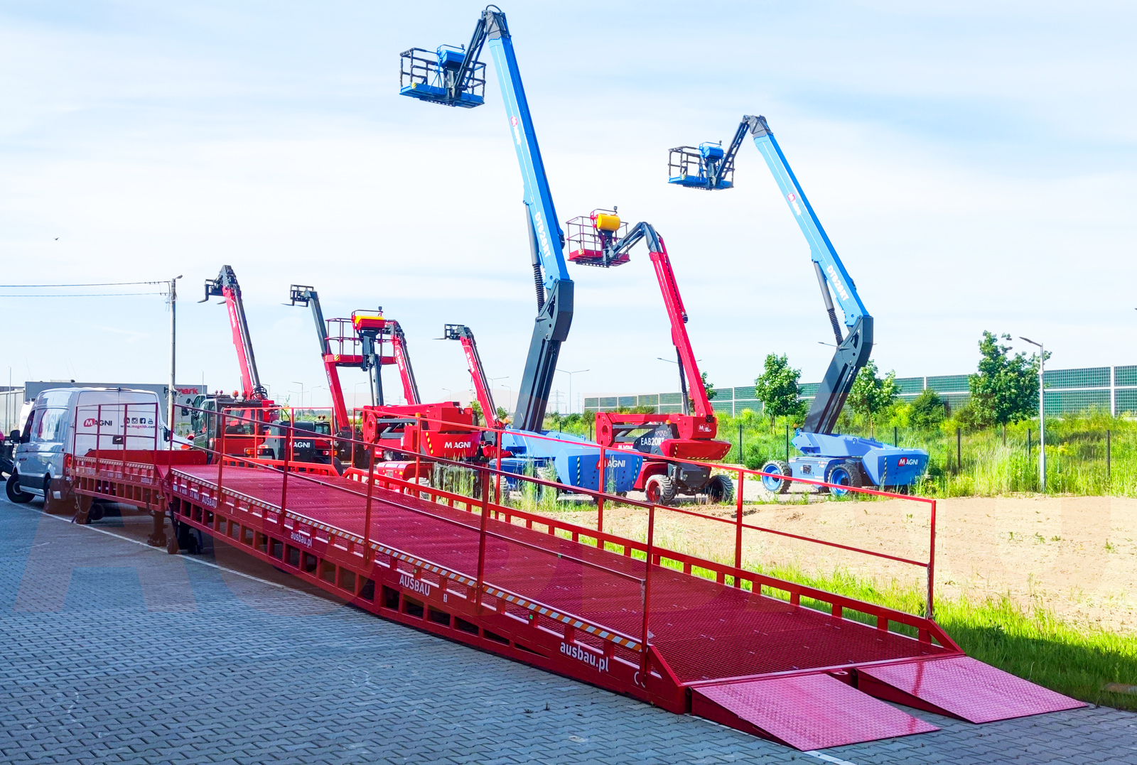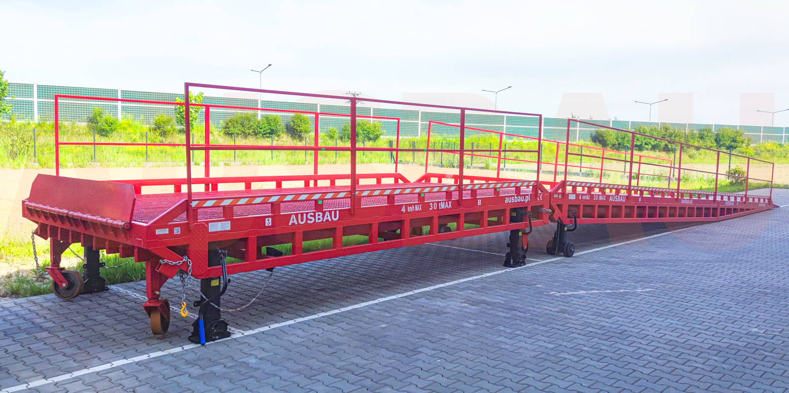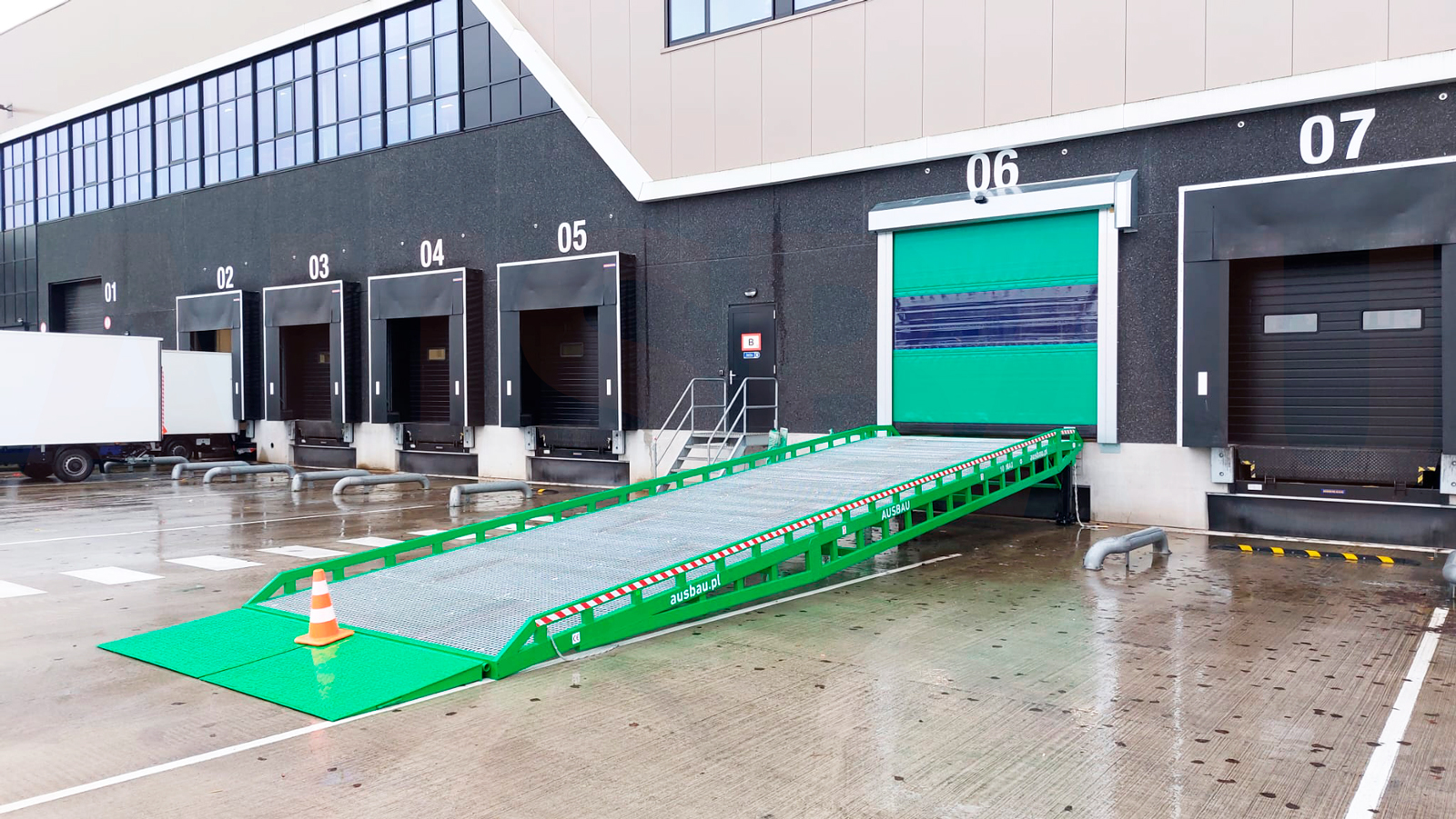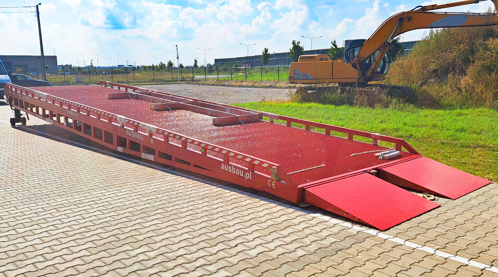 En mobil ramp med justerbara stödfötter är en universell lösning för snabb och säker lastning eller lossning av lastbilar, containrar och semitrailers.